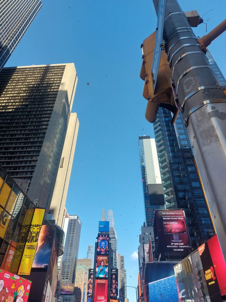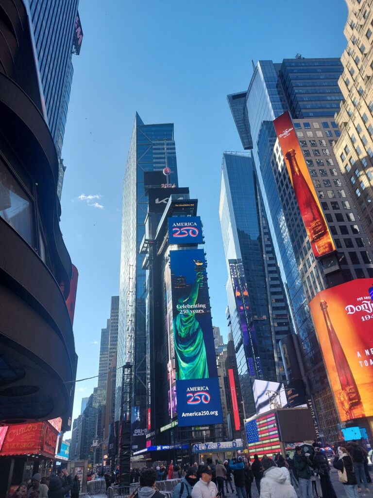 タイムズスクエアって、どこからでも人が集まるスゴい場所ですよね~